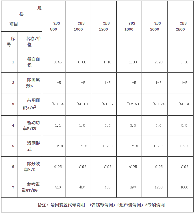 玻璃粉搖擺篩技術(shù)參數(shù):